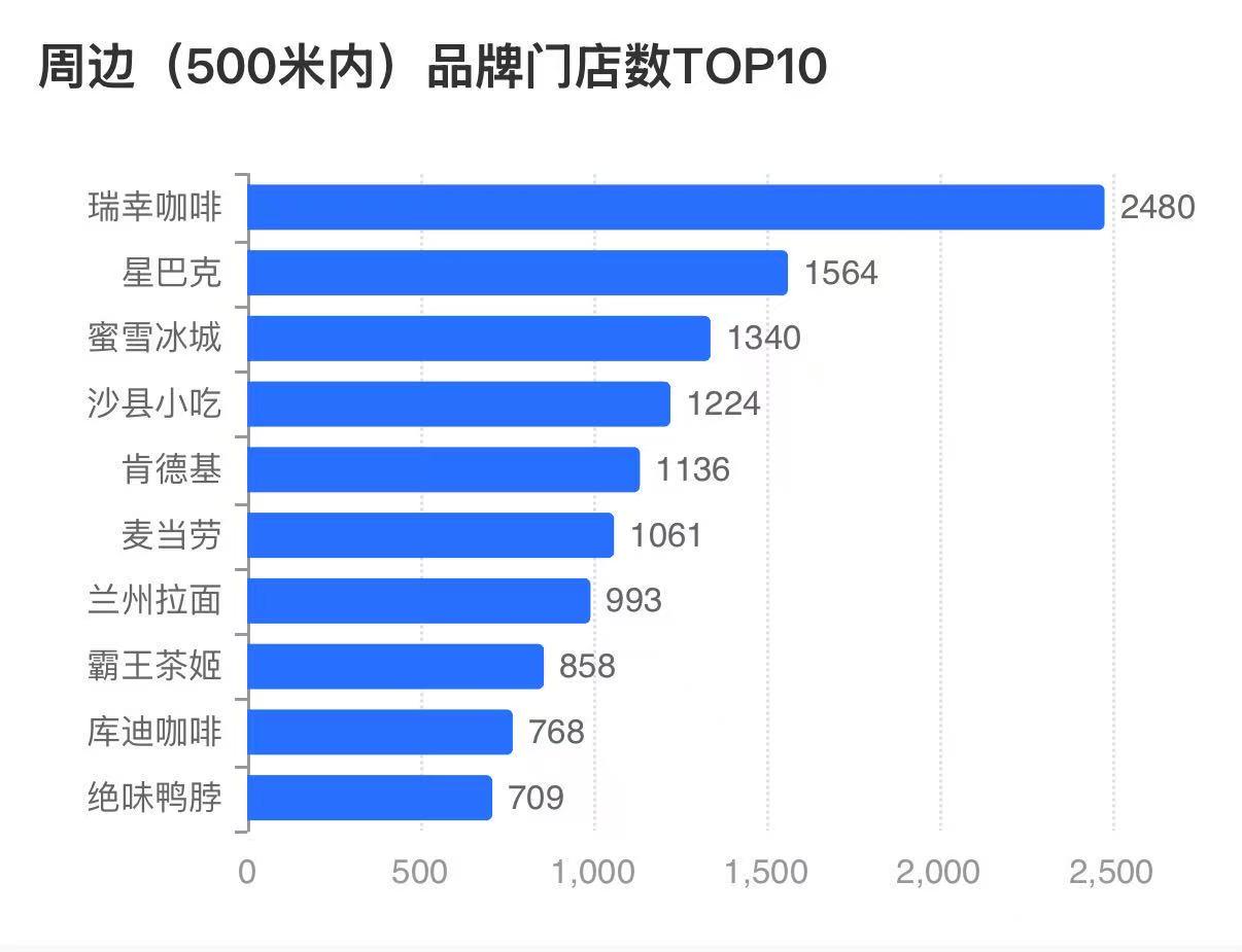 瑞幸曾被稱為最深入研究達美樂的企業,而如今達美樂在中國的開店策略反而越來越接近瑞幸。據窄門餐眼數據,達美樂周邊(500米內)出現最多的品牌是瑞幸咖啡,除了瑞幸門店數量基數大,更直接的原因可能是二者選址模式日趨相似。