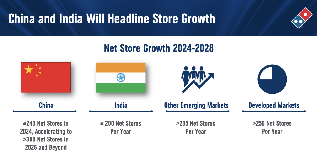 達美樂全球曾在投資者會議中表示,中國計劃在2026年及以後每年淨新增超過300家門店,顯著高於其他市場。