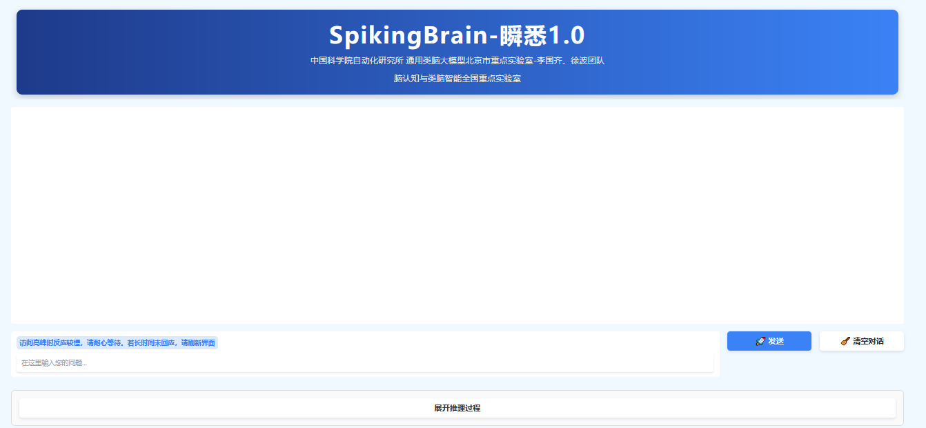 目前,該研究團隊開源了SpikingBrain-1.0-7B模型並開放SpikingBrain-1.0-76B測試網址。