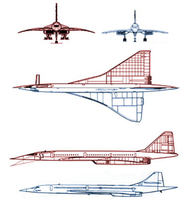 相比之下,自中蘇分裂後,蘇聯人並無需要頻繁跨越漫長距離往返的友邦,其自身中亞-遠東地區的發展程度則不足以支撐“協和”(藍色)式超聲速客機的運營成本。圖-144(紅色)是純粹的面子工程,這注定了其客運上的失敗。