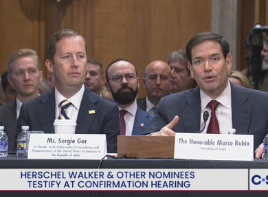 11日,魯比奧陪同戈爾出席參議院提名確認聽證會 視頻截圖