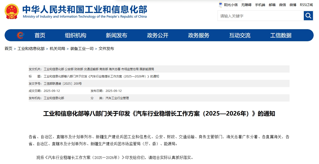據工業和信息化部網站9月12日消息,工業和信息化部等八部門印發《汽車行業穩增長工作方案(2025—2026年)》。在具體工作舉措部分,方案提出要推動智能網聯技術產業化應用。