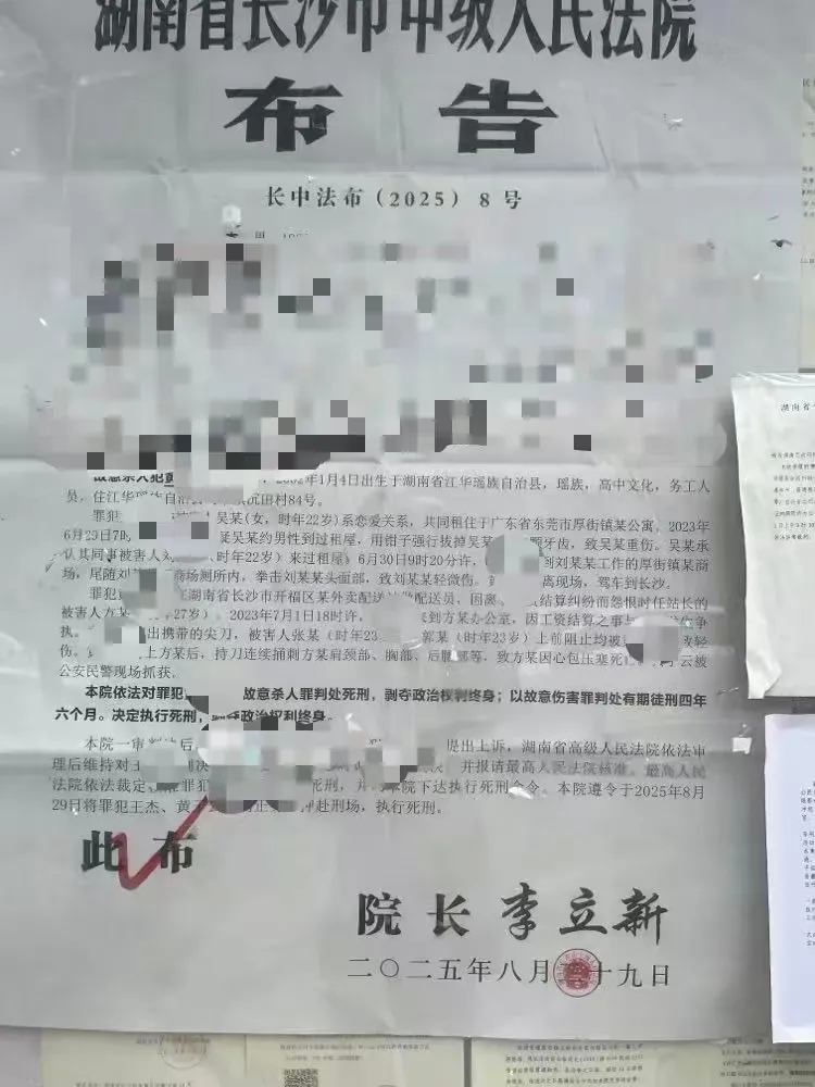近日,湖南省長沙市中級人民法院的一則佈告引發關注。佈告稱,黃某雲拔掉女友8顆牙致其重傷,逃竄後又連傷4人,致1人死亡,長沙市中級人民法院依法判處黃某雲死刑。已於8月29日執行。