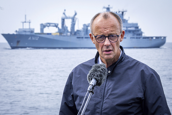 2025年8月28日,德國總理默茨視察海軍。 視覺中國