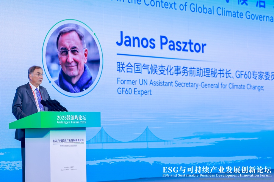 聯合國氣候變化事務前助理秘書長、GF60專家委員Janos Pasztor發表主旨演講認為,歐盟碳邊境調節機制(CBAM)根據進口商品的碳含量徵税,是國際貿易和氣候政策的一次重要交匯。當前全球貿易面臨的不僅是技術或政策調整,更是一次系統性重塑,貿易與氣候治理必須協同推進,避免滑向規則分裂、信任流失的局面。