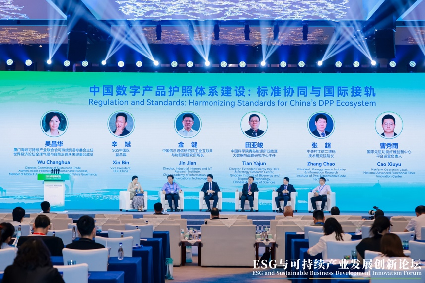 圓桌對話由廈門海峽可持續產業聯合會可持續貿易專委會主任、世界經濟論壇全球氣候與自然治理未來理事會成員吳昌華擔任主持。SGS中國區副總裁辛斌、中國信息通信研究院工業互聯網與物聯網研究所所長金鍵、中國科學院青島能源所泛能源大數據與戰略研究中心主任田亞峻、中關村工信二維碼技術研究院院長張超、國家先進功能纖維創新中心平台運營負責人曹秀雨各自從技術架構、數據互操作性、供應鏈追溯、產業應用及平台運營等多維度共同剖析了DPP在構建可信數據鏈條、驅動製造業綠色低碳轉型、增強供應鏈透明度及實現跨境貿易可信追溯方面的中國實踐與協同挑戰。
