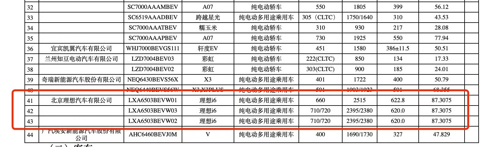 根據此前工信部新車申報目錄透露的信息,理想i6將全系配備87.3kWh磷酸鐵鋰電池,全系具備5C超充能力。