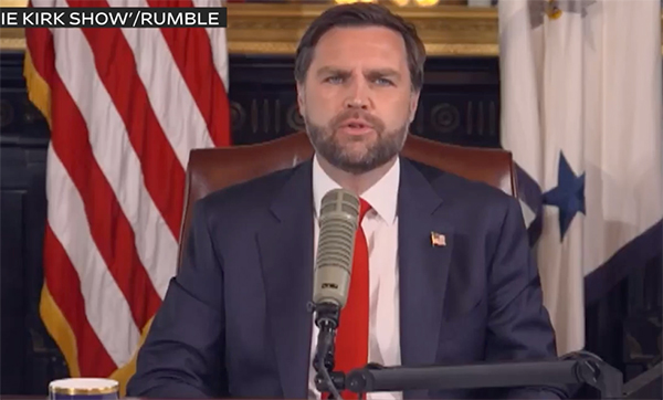當地時間9月15日,美國副總統萬斯“代班”主持柯克播客。 視頻截圖