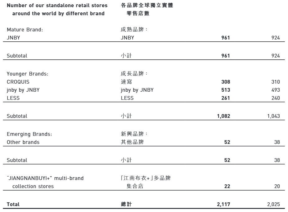 截至6月底,江南布衣運營門店數為2117間,較去年同期增加92間。其中,成熟品牌JNBY的門店數為924家,成長品牌的門店數為961家,新興品牌門店數為52家。此外,江南布衣+多品牌集合店新增兩店至22家。