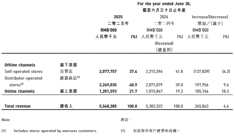 對此,江南布衣解釋稱是因客流量下滑,難以完全通過集團不斷升級的增值服務、店鋪形象和購物體驗來彌補。值得注意的是,江南布衣對線下門店的依賴度也相對較高。2025財年,江南布衣的31.56億元營收中,有25.542億元來自線下實體店,佔比高達81%。