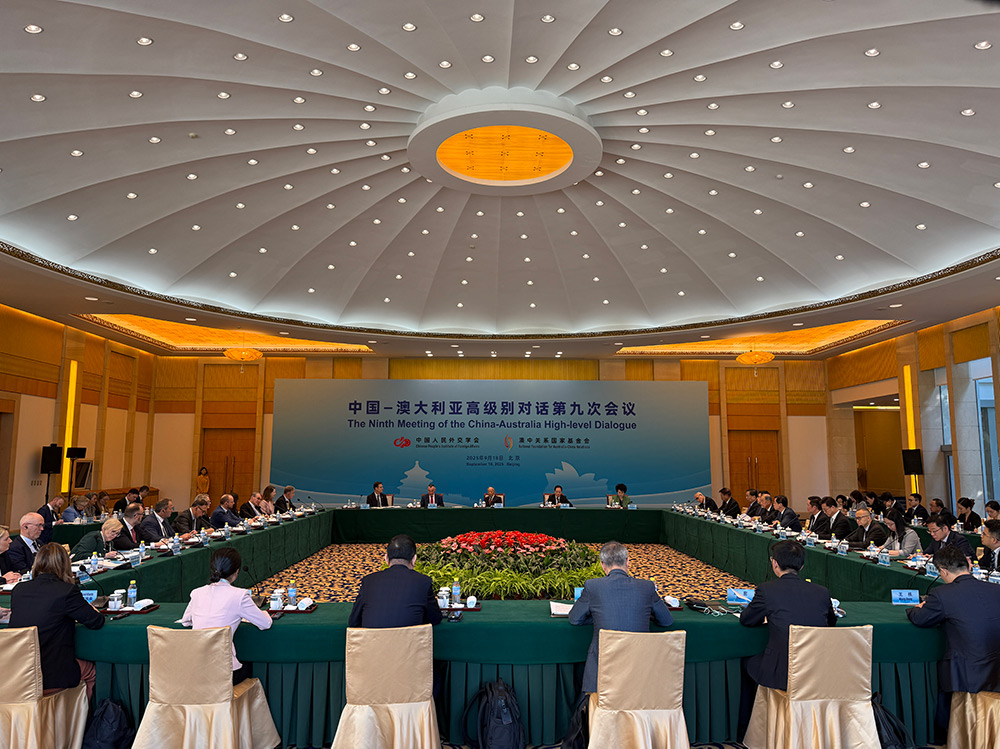 9月18日,由中國人民外交學會與澳大利亞澳中關係國家基金會共同舉辦的中澳高級別對話第九次會議在北京舉行。來自中澳兩國政府相關部門的負責人以及來自商、學、媒體和文化界近40名代表出席會議。