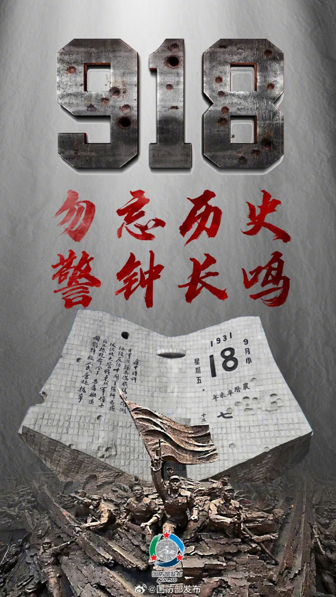 9月18日,國防部新聞局官方微博@國防部發布 發佈海報,強調“勿忘歷史,警鐘長鳴”。