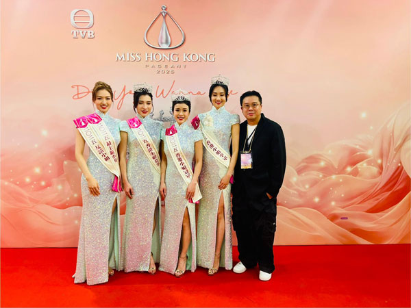 《2025香港小姐競選》監製晴朗與本屆三甲,以及“友誼小姐”兼“最上鏡小姐”李尹嫣(左一)合影。 晴朗供圖。