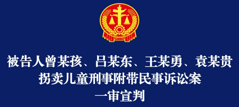2025年9月19日,山東省泰安市中級人民法院一審公開宣判被告人曾某孩呂某東、王某勇、袁某貴拐賣兒童刑事附帶民事訴訟一案,以拐賣兒童罪分別判處被告人曾某孩死刑,緩期二年執行,剝奪政治權利終身,並處沒收個人全部財產;被告人呂某東無期徒刑,剝奪政治權利終身,並處沒收個人全部財產;被告人王某勇無期徒刑,剝奪政治權利終身,並處沒收個人全部財產;被告人袁某貴有期徒刑十五年,並處罰金人民幣一萬元;依法支持附帶民事訴訟原告人姜某乙、喬某某(被害人姜某甲的父母)訴訟請求人民幣20萬元。