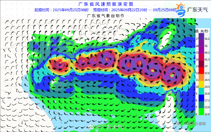 9月21日,@廣東天氣 發佈提醒,受超強颱風“樺加沙”影響,23-25日廣東省海面和陸地將有一次嚴重風雨影響,需提前做好“巨災防禦”準備。