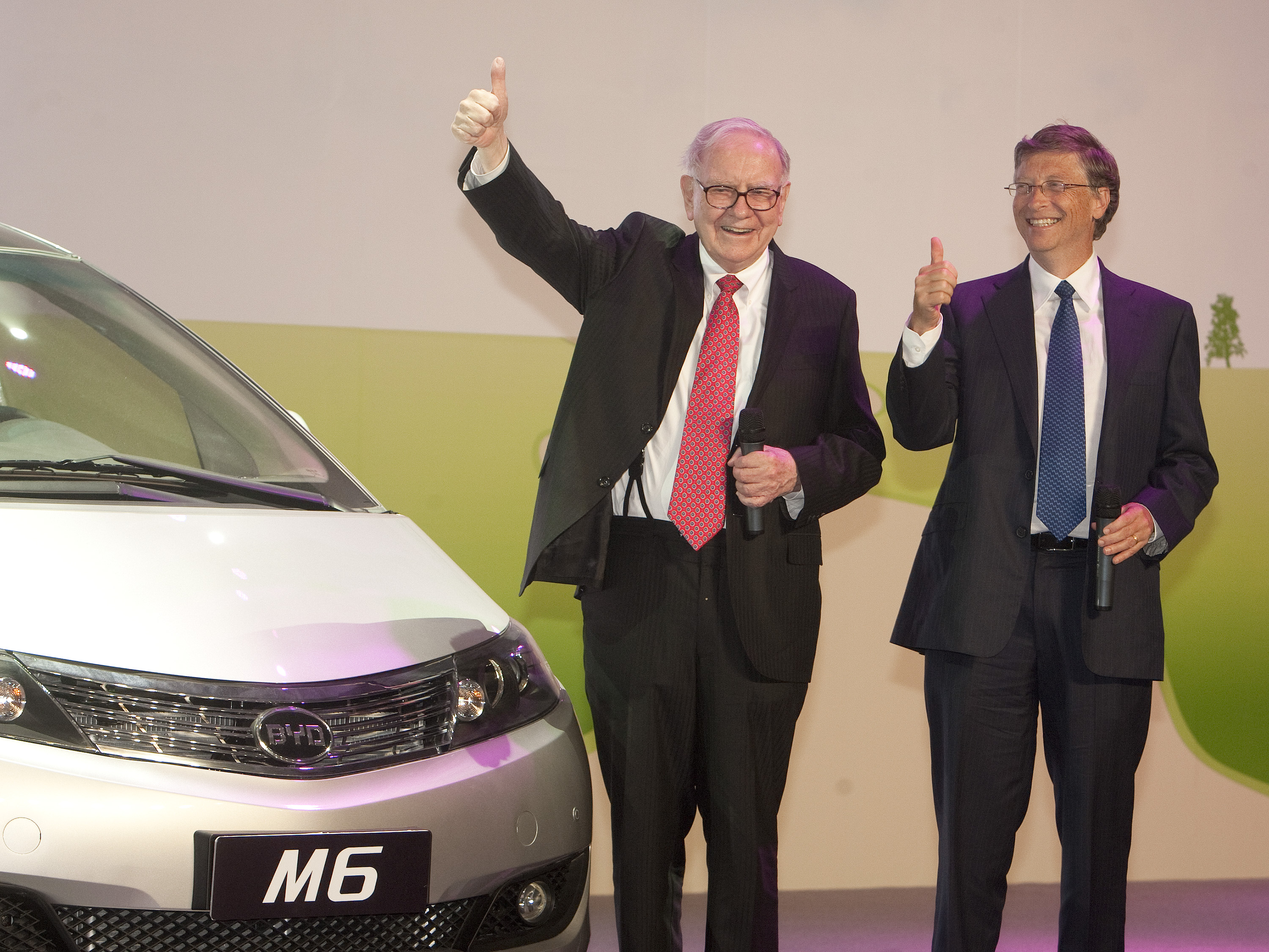 2010年,巴菲特(左)與比爾·蓋茨出席比亞迪M6上市發佈會 視覺中國