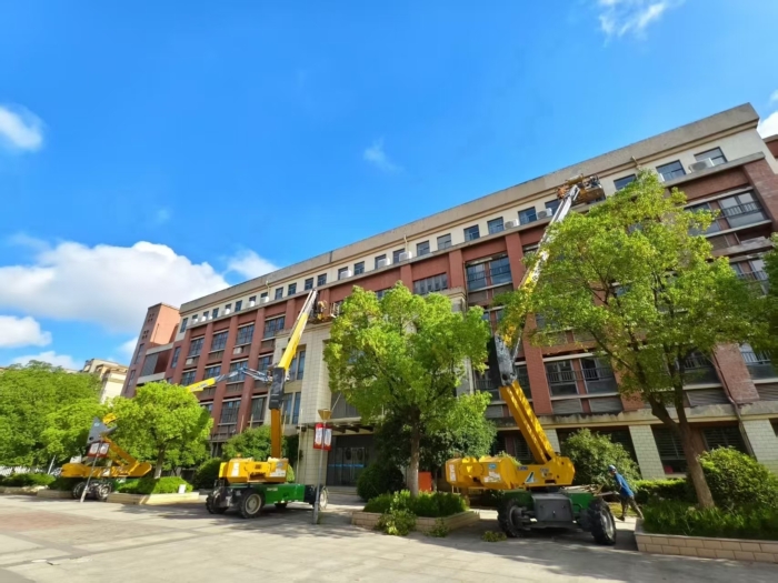 很多外資的撤出,最主要的原因是在中國市場競爭不下去了,比如卡特彼勒等。圖為徐工直臂式高空作業平台,在進行學校宿舍整修 徐工官網