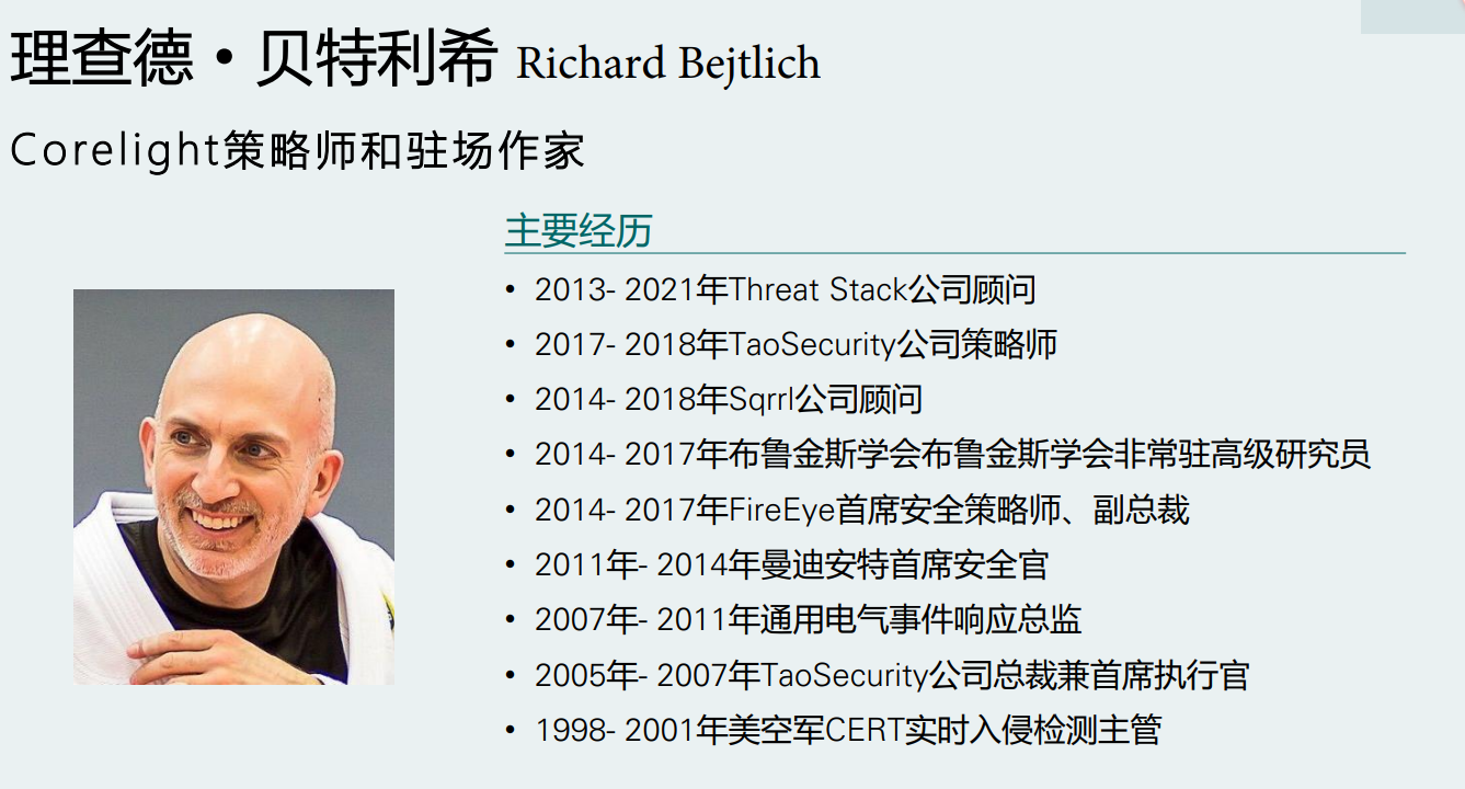貝特利希是帶着鮮明的“旋轉門”色彩的網絡安全專家,他曾服役於美國空軍,在美空軍CERT(網絡安全應急響應小組)擔任即時入侵檢測主管。2012年3月26日,美國國會的美中經濟與安全審查委員會(USCC)舉行“中國的網空能力與核能力發展”聽證會,三位美方專家就中國網空活動問題在聽證會作證,貝特利希就是其中之一。