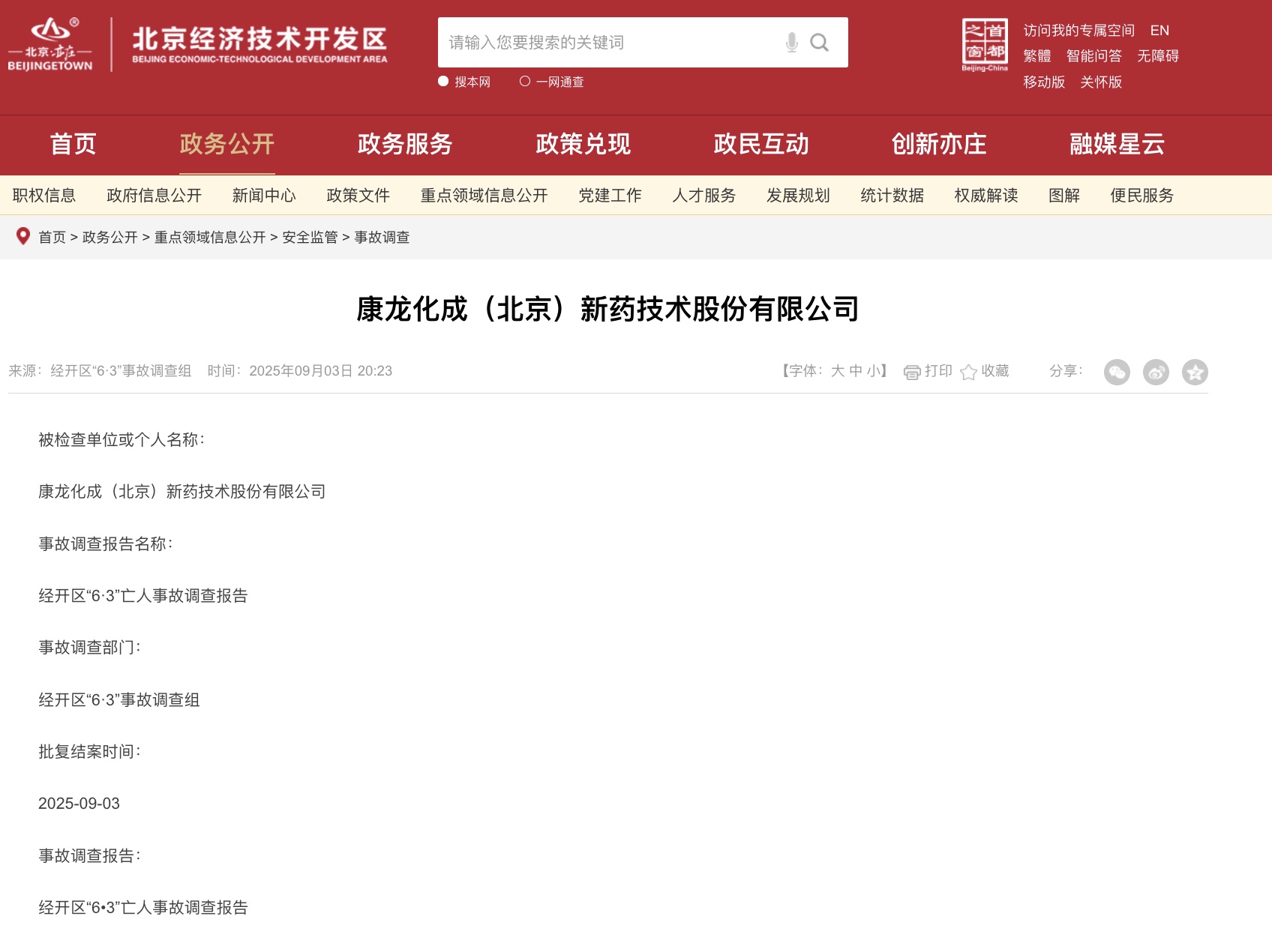 九月初,北京經濟技術開發區網站披露了國內CXO龍頭企業康龍化成(300759.SZ,03759.HK)一起導致兩名員工死亡的安全事故調查結果。這起發生在6月3日的悲劇,直接原因是兩名生產操作員郭某(37歲)和井某學(38歲)未按規程操作,進入充滿氮氣的柔性隔離器內因缺氧窒息死亡。