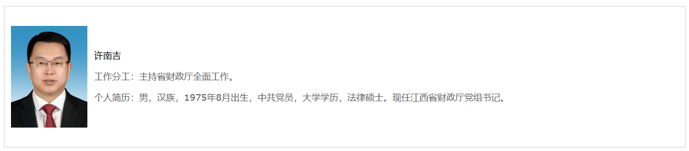據江西省財政廳網站“領導分工”欄目信息顯示,許南吉已任江西省財政廳黨組書記,主持省財政廳全面工作。