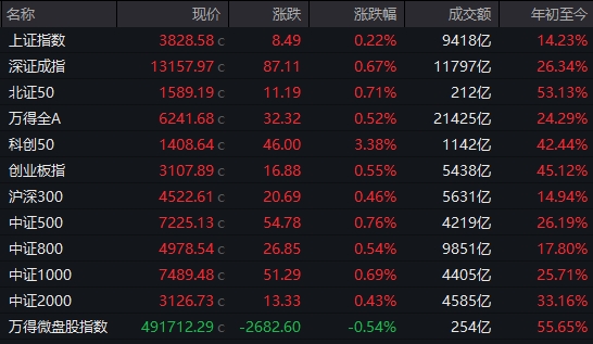 A股三大指數收漲,滬深兩市成交額連續8個交易日破2萬億