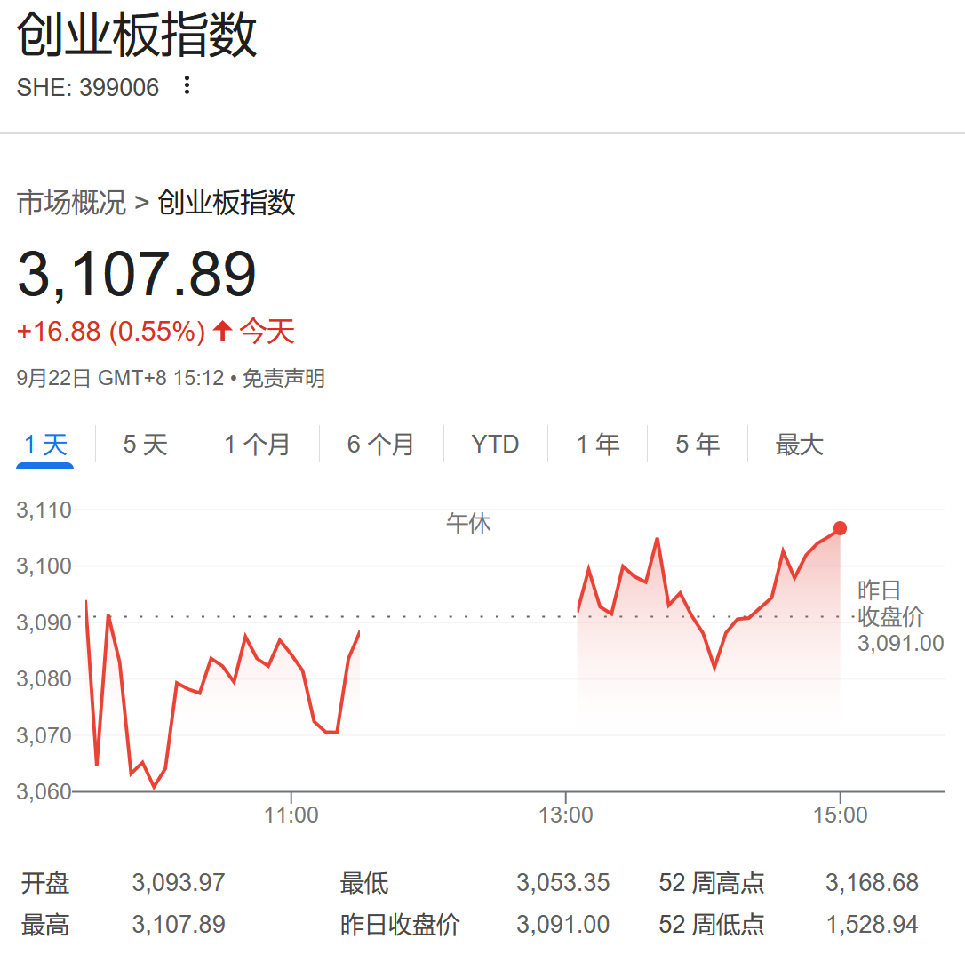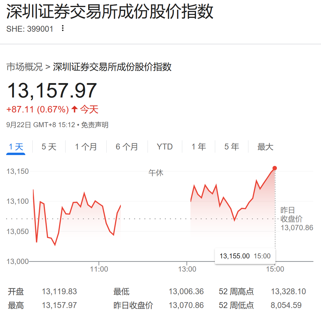 9月22日,A股市場全天震盪拉昇,三大指數均收漲。截至收盤,滬指漲0.22%,深成指漲0.67%,創業板指漲0.55%。