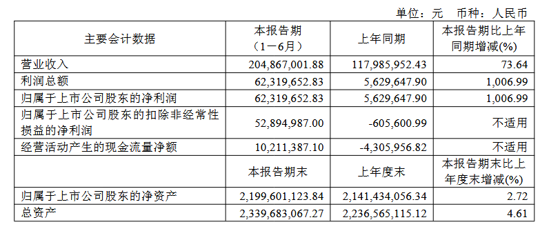 臻鐳科技淨利潤在2023年和2024年兩年經歷了大幅下滑,今年上半年實現了高增長。2025年半年報顯示,公司上半年實現營業收入2.05億元,同比增長73.64%;歸母淨利潤6231.97萬元,同比增長1006.99%。