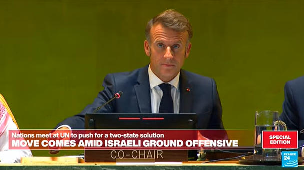 “有人可能會説太早,也有人説太晚了,但有一件事是肯定的:我們不能再等了,”馬克龍敦促以色列不要阻撓為該地區帶來和平的努力。他還呼籲徹底改革巴勒斯坦的治理,並表示“巴勒斯坦國應該為其人民帶來希望……並建立民主表達的框架”。