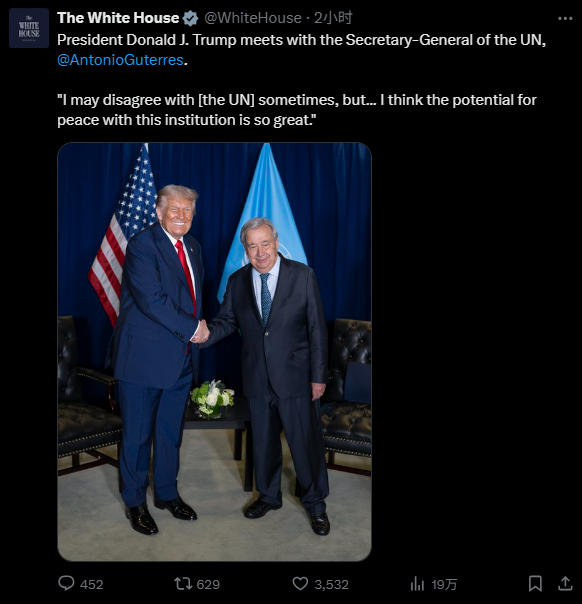 在貶低聯合國後,特朗普與古特雷斯會面 推文截圖