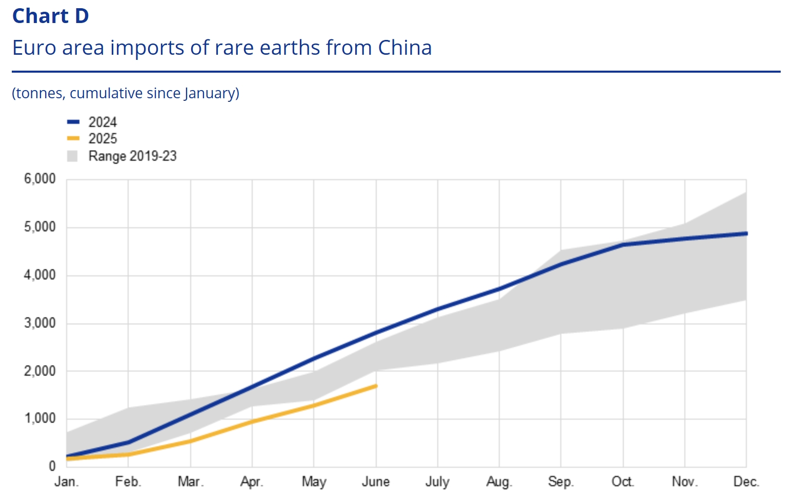 歐元區從中國進口的稀土量。ECB報告截圖