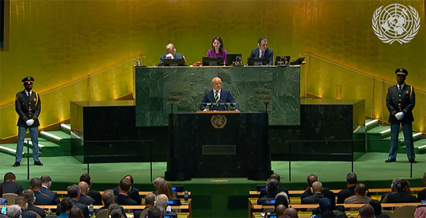 當地時間9月23日,巴西總統盧拉在第80屆聯合國大會上發言 視頻截圖
