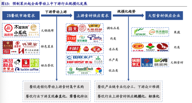 開源證券分析師也指出,預製菜上游格局有望呈現更高集中度,容易催生頗具規模的綜合性食材供應商,而因為我國餐飲市場規模大、需求多樣且細分,下游餐飲容易誕生一大批垂直性、聚焦細分品類的供應鏈餐飲品牌(餐飲零售化),實現前端行業細分、後端產品聚焦。