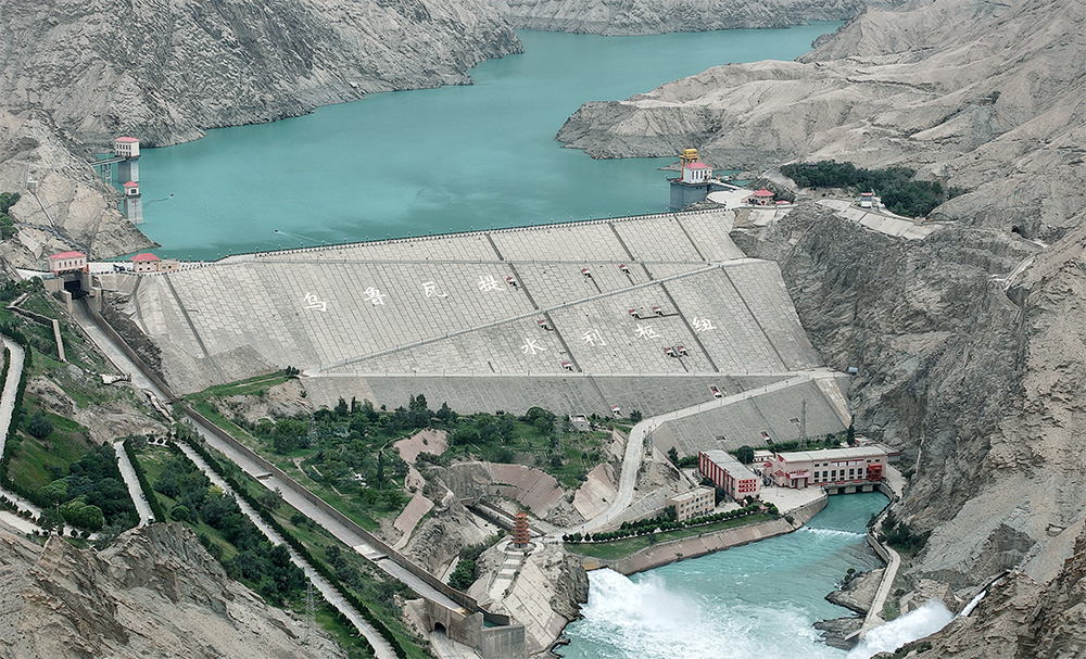 2025年8月6日,俯瞰烏魯瓦提水利樞紐工程。 石榴雲