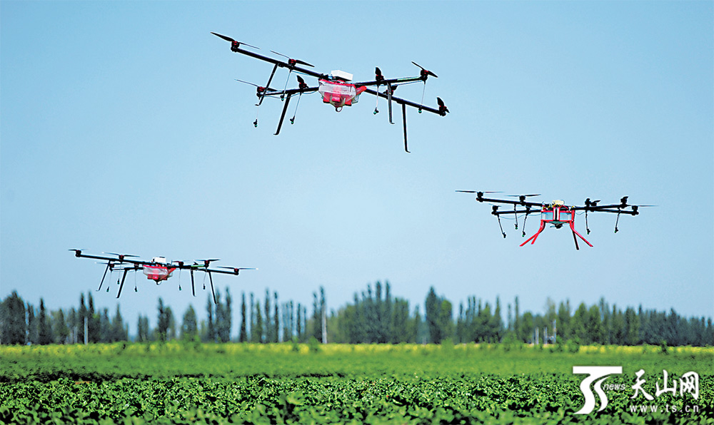昌吉國家農業科技園區,新疆天山羽人農業航空科技有限公司無人機在開展飛防作業。 天山網