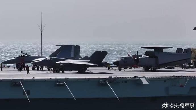 這次發佈策略很微妙。當天,解放軍海軍新聞中心“中國軍號”出了一部宣傳片《遠海有多遠》,後來還發了號外。加上央視放出的大量高清畫面,效果非常震撼。畫面裏,殲-15T、殲-35、空警-600從機庫由升降機送上甲板、固定到位、擋流板升起、地勤人員做出起飛手勢、電磁彈射器一把將飛機推出去,然後是穩健着艦、尾鈎勾住阻攔索——一套完整的流程,標準得像教科書一樣。