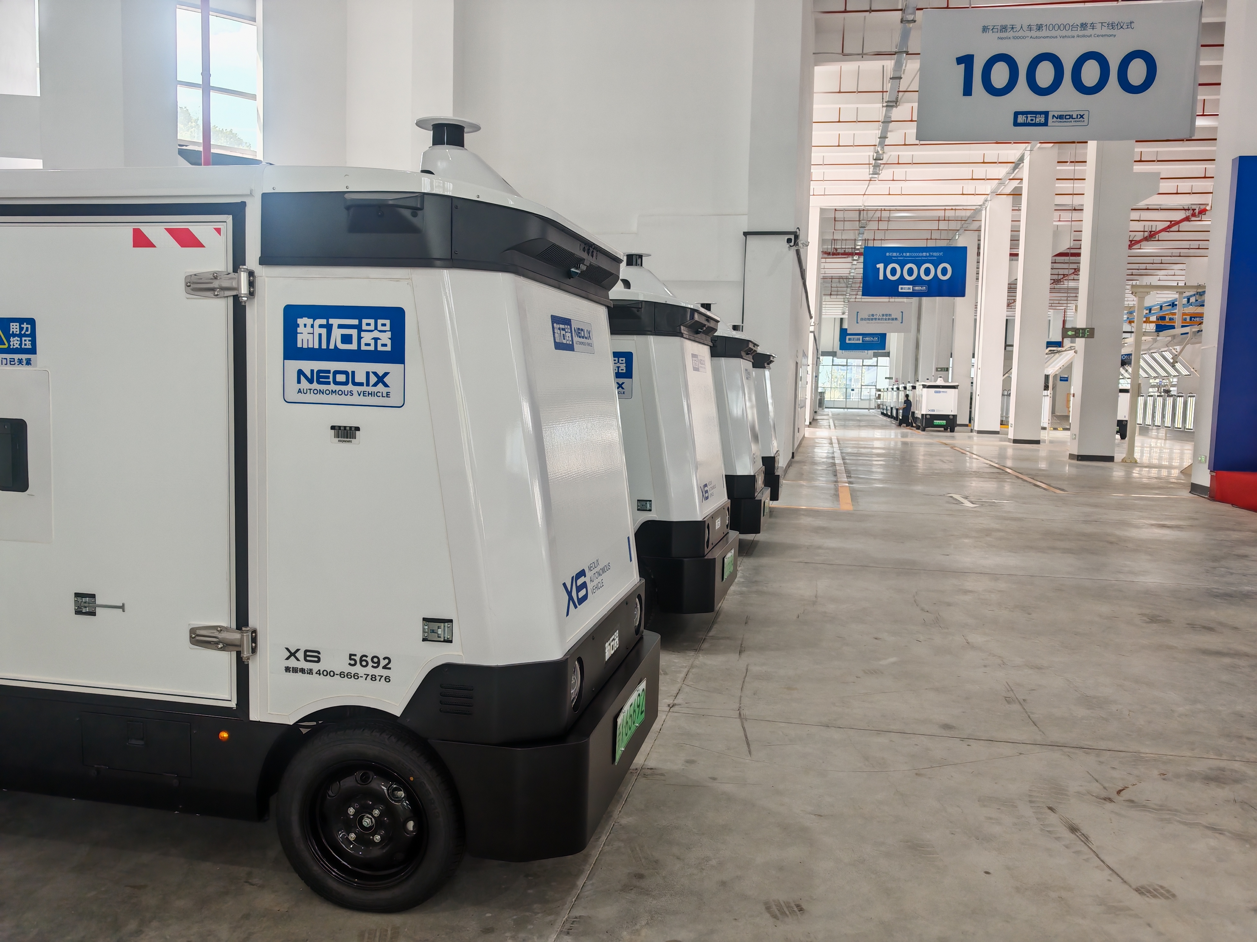 9月23日,位於“中國快遞之鄉”桐廬的新石器無人車生產基地內,第1萬台無人物流車緩緩駛下生產線。