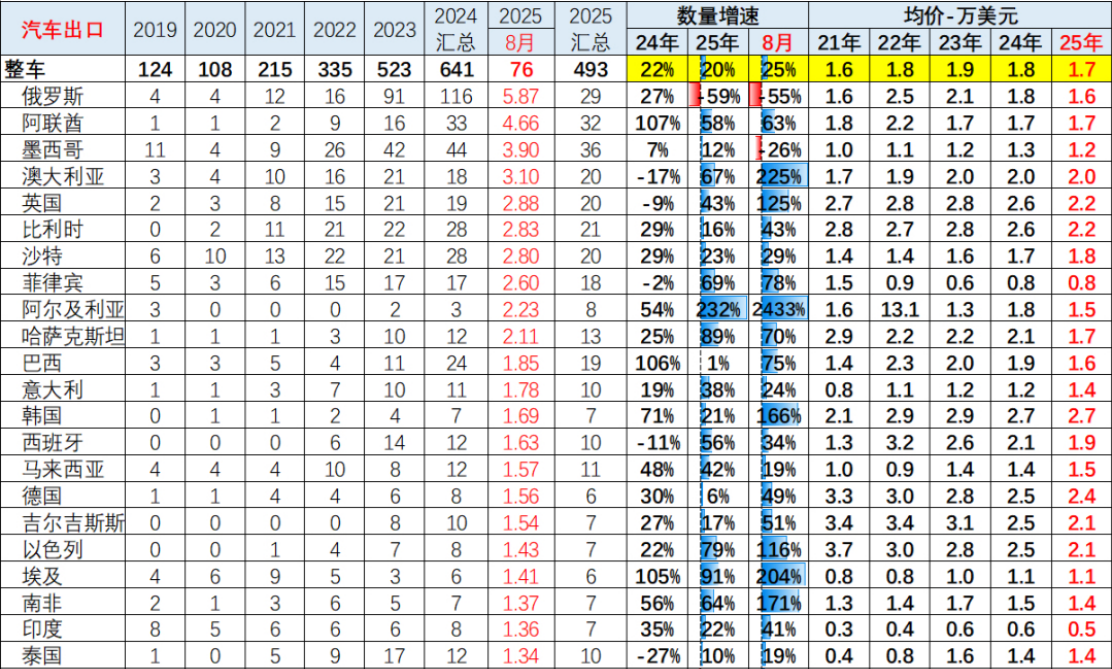 1—8月我國整車出口國別走勢 乘聯會秘書長崔東樹公眾號截圖