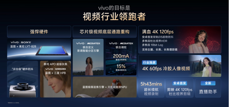 當靜態影像的每一個維度都被悉心打磨後,vivo將目光鎖定在移動創作的下一個核心戰場——視頻。短視頻時代,視頻能力已是旗艦影像的必爭之地。X300系列以系統級的架構重構,目標直指行業標杆,致力於成為“視頻行業領跑者”。