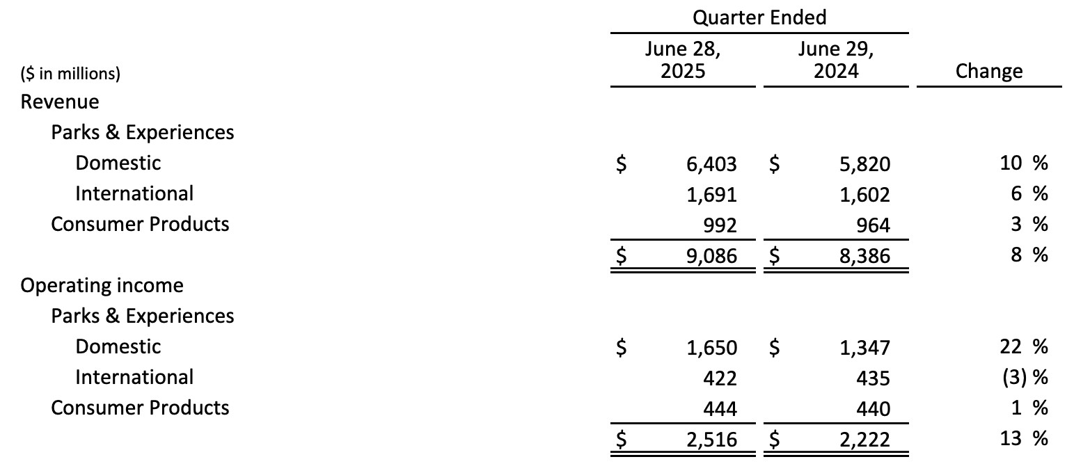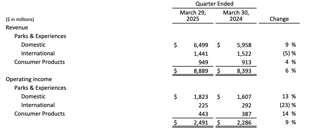 迪士尼FY2025Q2和FY2025Q3財報 來源:迪士尼