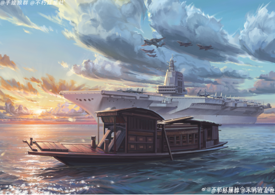 當他走向嘉興紅船的那一刻,這樣一艘偉大的戰艦必然會誕生在這個偉大的國家。 畫師@手繪狼羣
