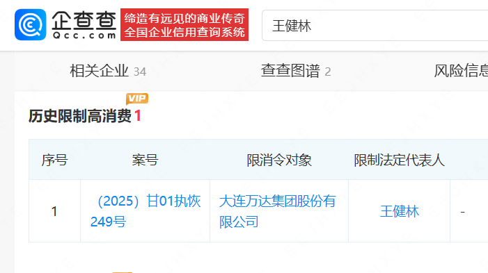 昨日,有多方消息稱王健林被限制高消費。相關限制消費令的執行法院為甘肅省蘭州市中級人民法院,涉及案件的案號為(2025)甘01執恢249號。案件流程信息顯示,今年7月,大連萬達集團股份有限公司等已因此案被執行1.86億餘元。