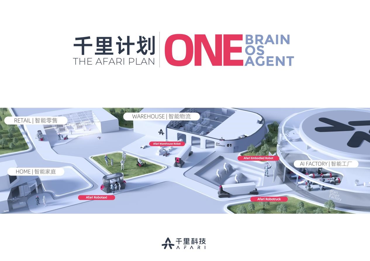 在此次發佈的“千里計劃(the Afari Plan)”中,千里科技更是提出了“AI+車+機器人”的平台級AI宏大願景,希望未來能夠全面佈局家庭和工業AI場景。