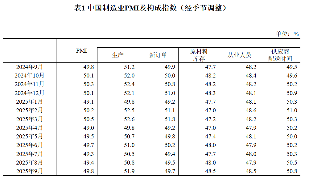 據國家統計局網站消息,9月30日,國家統計局公佈2025年9月中國採購經理指數運行情況。