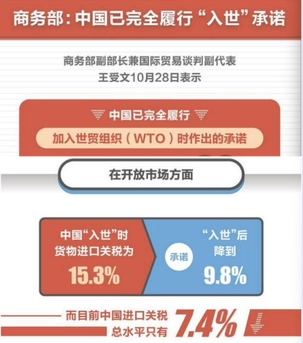 2021年,中國加入世貿組織20週年之際,中國宣佈:已經完全履行加入時的承諾。