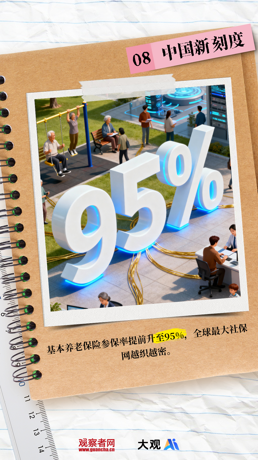 95%——基本養老保險參保率提前升至95%,全球最大社保網越織越密。
