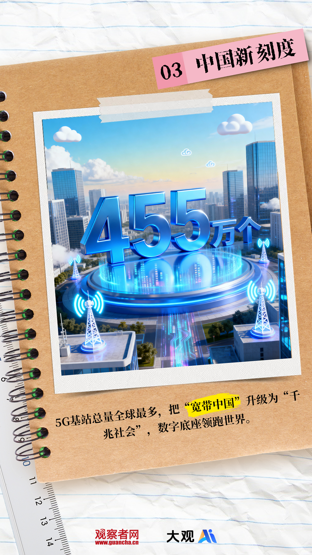 455萬個——截至2025年6月底,5G基站總數達到455萬個,總量全球最多;千兆寬帶用户達2.26億户,“寬帶中國”進一步升級為“千兆社會”,數字底座領跑世界。