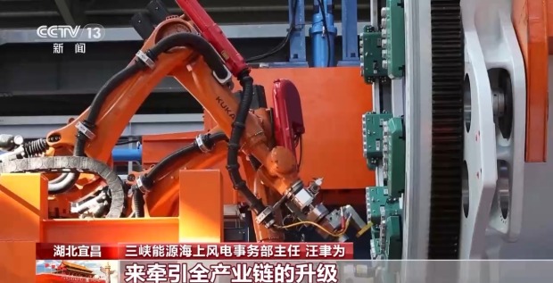三峽集團陽江公司風機吊裝負責人 朱彬:葉片吊裝是風機安裝中精度控制要求最高的一個環節。要把176顆直徑42毫米的螺栓,精準插入輪轂直徑45毫米的孔中,允許誤差僅3毫米。