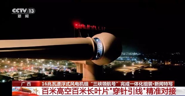 百米高空“穿針引線” 全球首台16兆瓦漂浮式海上風機安裝完成