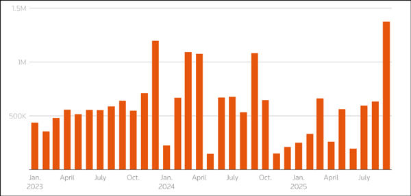 路透社2日援引倫敦證券交易所集團(LSEG)、船運數據公司Kpler以及兩位貿易消息人士的數據顯示,歐洲9月從印度進口的柴油量飆至130萬至140萬噸(摺合970萬至1040萬桶),創下2017年有統計以來同期最高紀錄。這種“嘴上批評、身體誠實”的操作,正是歐盟對俄能源制裁陷入自我悖論的生動註腳。