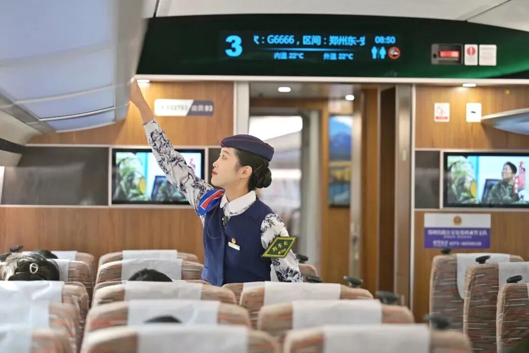 擔當G6666次列車值乘任務的是鄭州客運段高鐵三隊,他們加強運行途中的車廂巡視和重點旅客幫扶,將服務落實到細節之處,為旅客帶來舒適的乘車體驗。